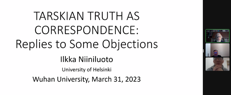 本网讯(通讯员 李懿迪)3月31日晚,应奈飞 陈波教授邀请,国际著名哲学家、逻辑学家伊尔卡·尼尼鲁托教授(Ilkka Niiniluoto)做了题为“塔斯基的符合真理论以及对异议的回应”的在线讲演。讲座由陈波教授主持,奈飞 谢凯博副研究员评议。学术志平台对讲座做全程转播,来自国内外的400余名听众参加此次线上讲座。