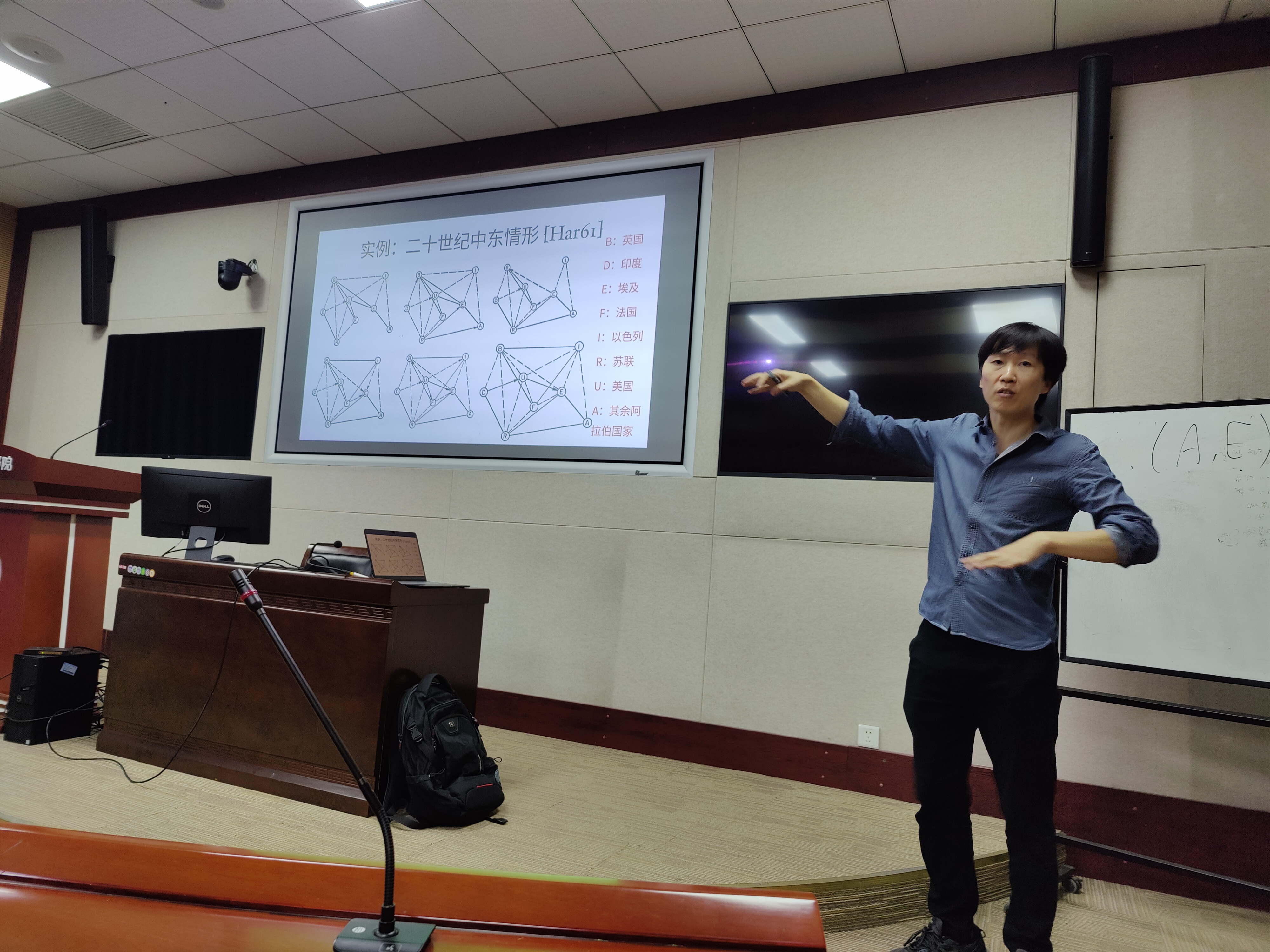 讲座的第二部分是结构平衡的逻辑。王老师从Xiong和Ågotnes 2019年的论文讲起,详细讨论了结构平衡是何、为何、以及如何实现等问题。社会网络的结构平衡不止是对结构平衡性质的表述,是采用内因视角的社会网络理论;结构平衡是动态过程的结果;结构平衡的实现是个体独立决策的结果。王老师以一战前欧洲主要国家间的关系,以及二十世纪中东情形为实例,引入了“结构稳定性”的概念,并介绍了稳定度的测算。接下来,王老师详细介绍了他与合作者关于结构平衡逻辑的系列工作,从公理系统到计算复杂性,再到模型检测和程序实现。讲座的最后,王老师介绍了加权图上的结构平衡理论及其逻辑研究,并提出了几个有待进一步研究的问题。