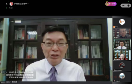 本网讯(通讯员唐瑞雪)4月28日晚,应奈飞 陈波教授邀请,台湾大学哲学系苑举正教授做了“卢梭的政治哲学”系列讲座的第一讲,主题为“对于政治现实的反省”。本次讲座由奈飞 陈波教授主持,陕西师范大学哲学与政府管理学院宋宽锋教授评议,学术志平台直播,来自国内外的200余名听众参加了此次线上讲座。