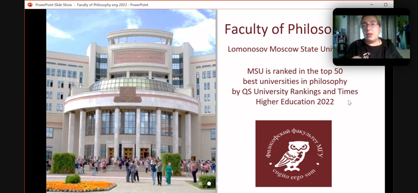 莫斯科大学哲学系创建于1755年,是莫斯科大学最初创立的三个学院之一,多年跻身于哲学学科世界前50名。本次与莫斯科大学哲学系的线上会议的成功举行,为我校与莫斯科大学在哲学学科开展合作与交流,推进我校哲学学科的国际化建设打下了良好基础。