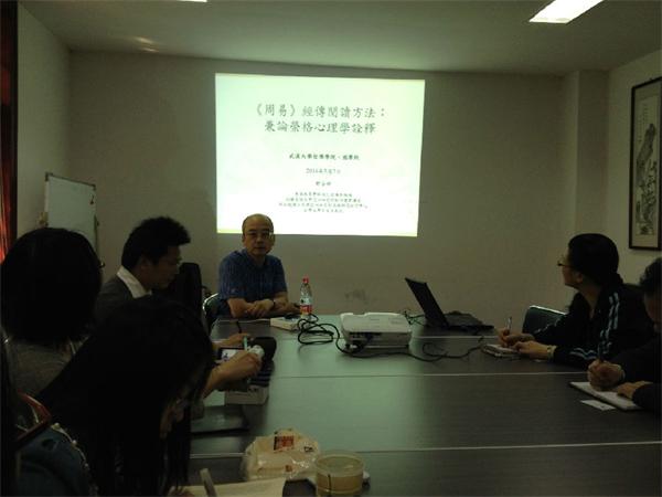 7日上午,郑吉雄教授在国学院会议室举行了题为《< 周易>经传阅读方法:兼论荣格心理学诠释》的第二场讲座。本次讲座延续了第一场讲座的核心问题之一:《周易》经传的关系。郑教授从中国传统经典诠释的特性入手解读《周易》经传的关系,并对荣格以心理学为核心的诠释学理论做出评价。