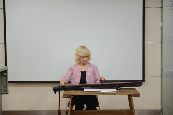 在题为《审美的过程》的讲座中,知音教授探讨了审美活动中感性实践与理性反思之间交互往复的过程。她认为在审美过程中,姿势(技术)、感觉、思想三者是相互联系、相互影响的。审美概念产生于“感觉”向“思想”转化的过程中。知音教授通过对西方的小提琴和中国的古琴的演奏法与记谱法的比较,说明西方艺术侧重于“思想”与“姿势”,而中国艺术则侧重于“感觉”和“修行”。现代西方哲学家与艺术家意识到单从理论到技术不足以解决艺术的根本问题,开始逐渐将情感引入到哲学与艺术之中。由此体现出中西方文化交融的一种态势。在题为《诗歌与音乐的联系》的讲座中,知音教授主要探讨了中国传统诗词艺术中词与乐的关系问题。她首先说明诗词的结构与意思之间具有一致性。其次,她又以陆游的《鹧鸪天》及辛弃疾的《水龙吟》为例,对其词文与同名古琴谱的乐曲进行对照分析,发现词与乐之间也具有内在一致性。这一发现重新连接起古典文学中词与乐的关系,在词乐传统断裂的当代可谓意义重大。第三场讲座的主题是《< 周礼>音乐问题的研究》,其中探讨了《周礼》中所涉及的旋宫转调等音乐问题。针对《周礼·大司乐》中对于古代礼乐活动的记载,知音教授从中看出十二律吕与天地阴阳及时节轮换的对应关系。如夏至和冬至对应返回,即从阳到阴和从阴到阳的转变。这种返回或转变并非生硬造成,而是像书法中的逆锋起笔,欲左先右,欲下先上。她从数学统计学的角度得出,十二律吕和十二个月中五步之后的中断对应于“三分损益法”中的分割计算。为了回到初始音,需要进行三次大三度音的转换过程,正如通过十二律吕的四个级别而形成十二年的循环。这种观点为《周礼·大司乐》中的旋宫转调问题提出了一种新的解释。