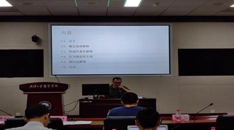 厦门大学的蔡海锋老师的报告题目是:知识作为自然类。蔡老师通过考察“知道”在自然科学中的因果解释角色和语义特征,认为“知道”具有自然类词的基本特征,并且是一种有层次的自然类。湖北大学的王振老师就克里普克关于专名的讨论对蔡老师的报告做出了进一步补充。