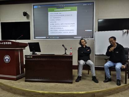 讲座最后,主持人冯书怡老师总结了两位主讲人的发言。苏德超教授代表哲学院对两位老师的到来表示感谢。蒋运鹏和徐敏两位老师最后祝愿同学们在哲学史和哲学问题两方面的学习都能取得优异成绩。