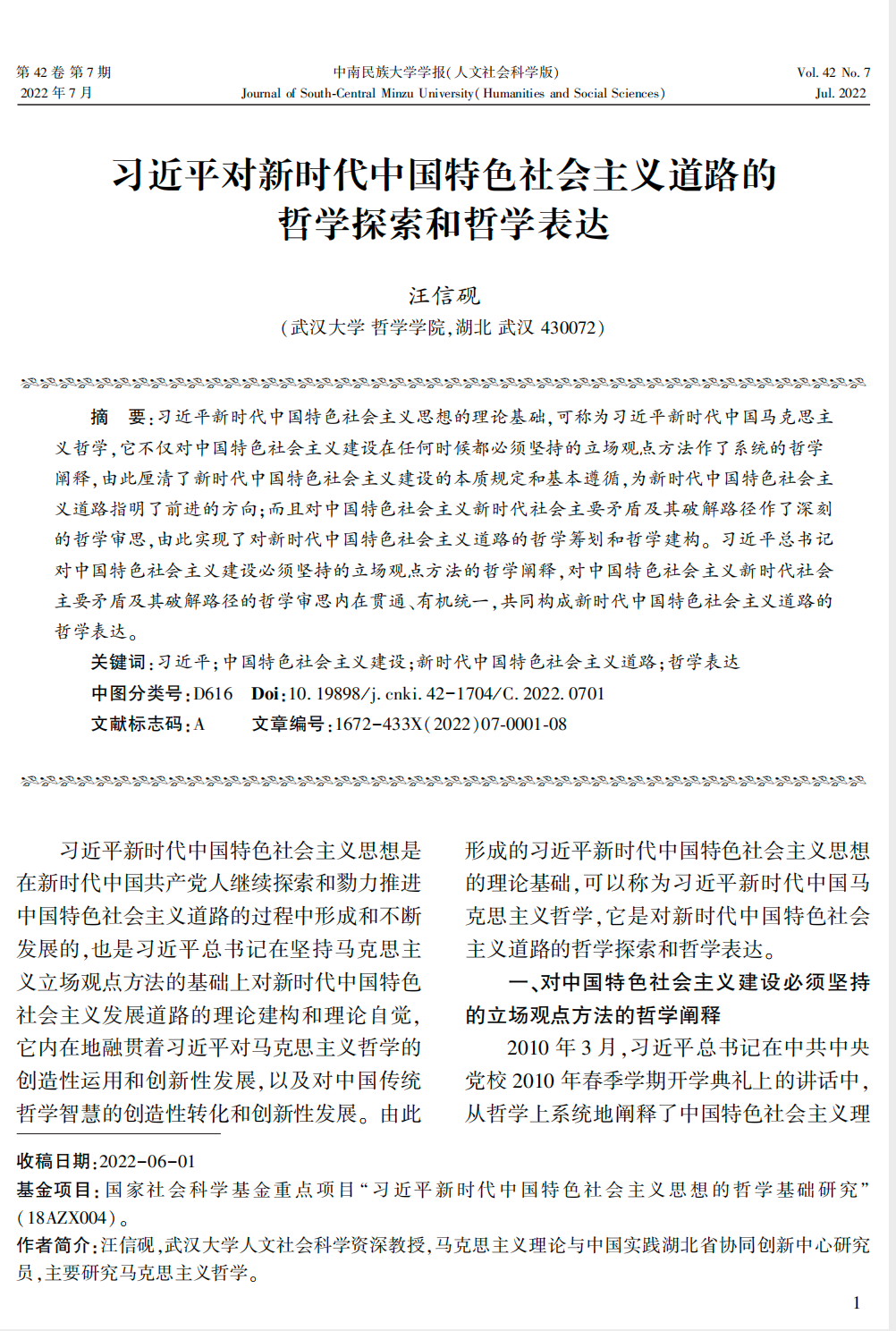 :《中南民族大学学报(人文社科版)》2022年第7期