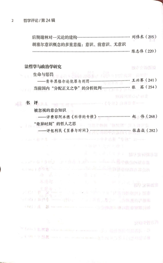 《哲学评论》第24辑目录