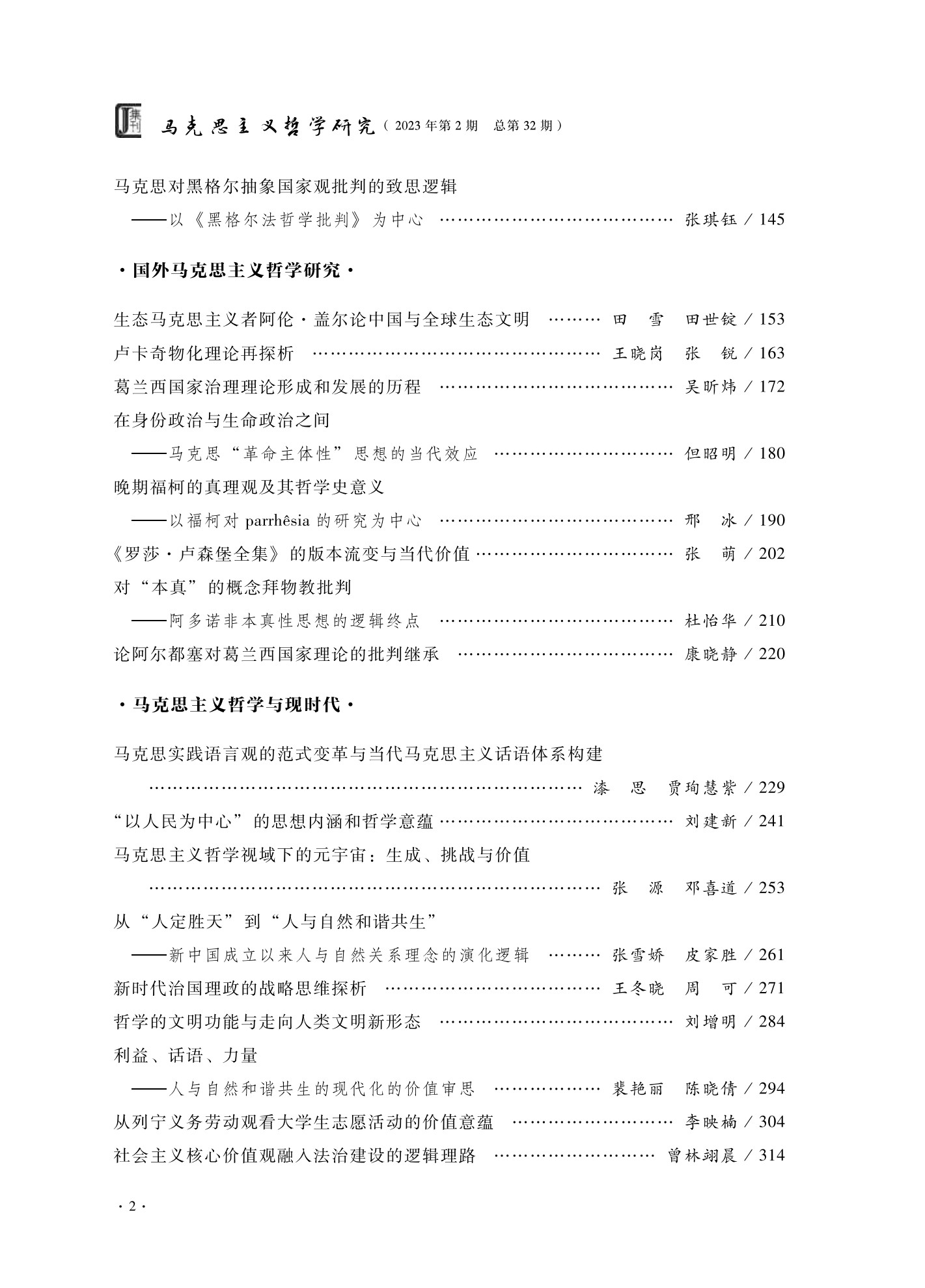 《马克思主义哲学研究》(2023年第2期)