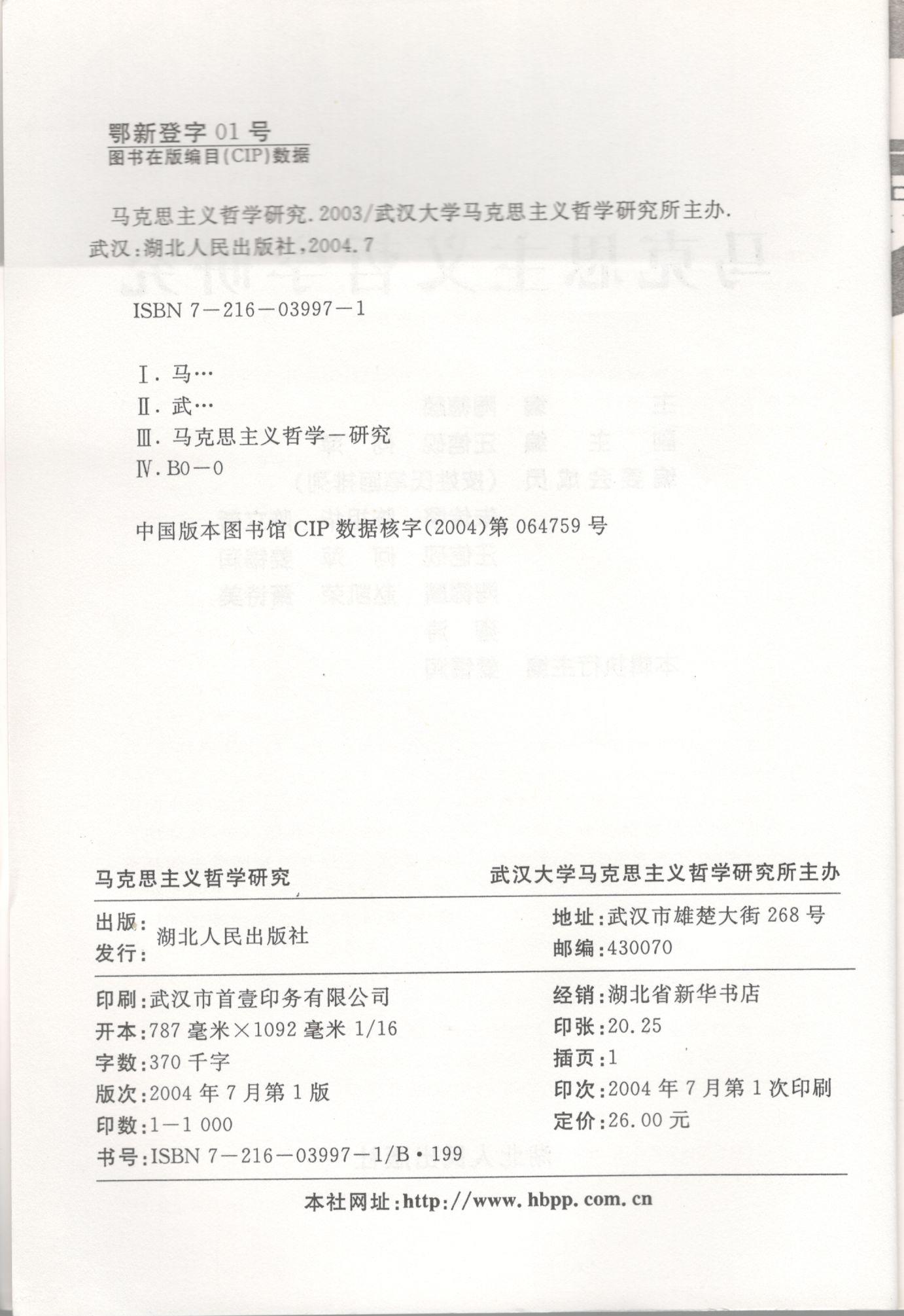 《马克思主义哲学研究》(2003年)