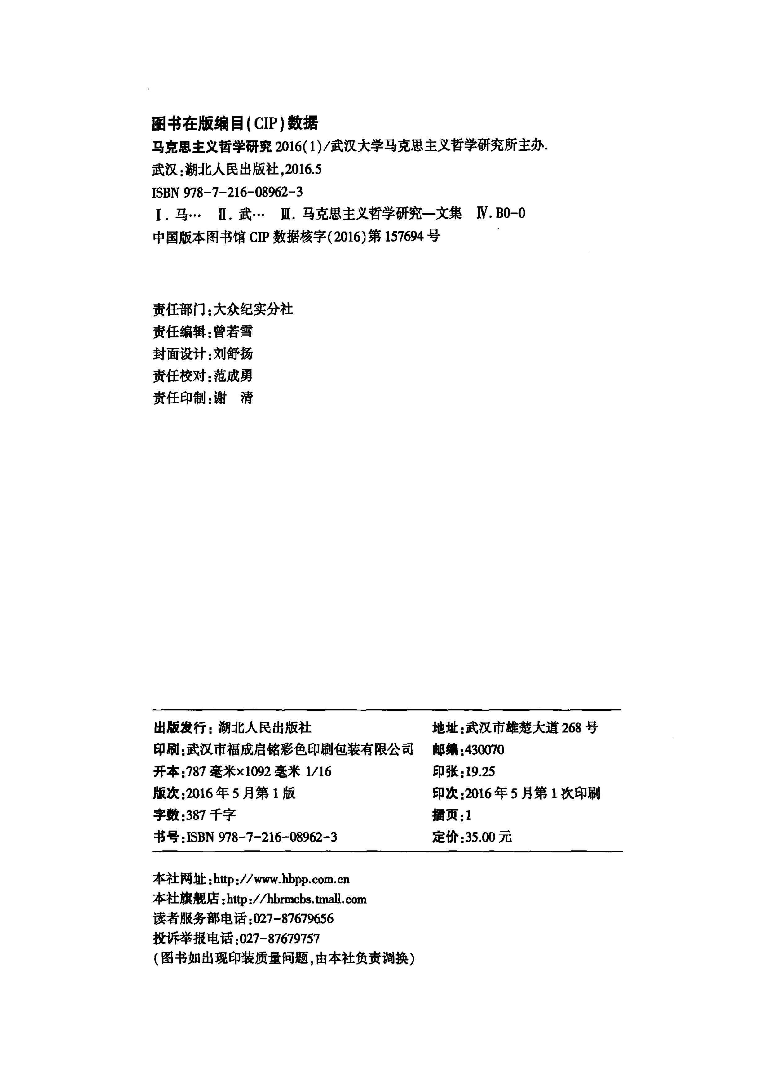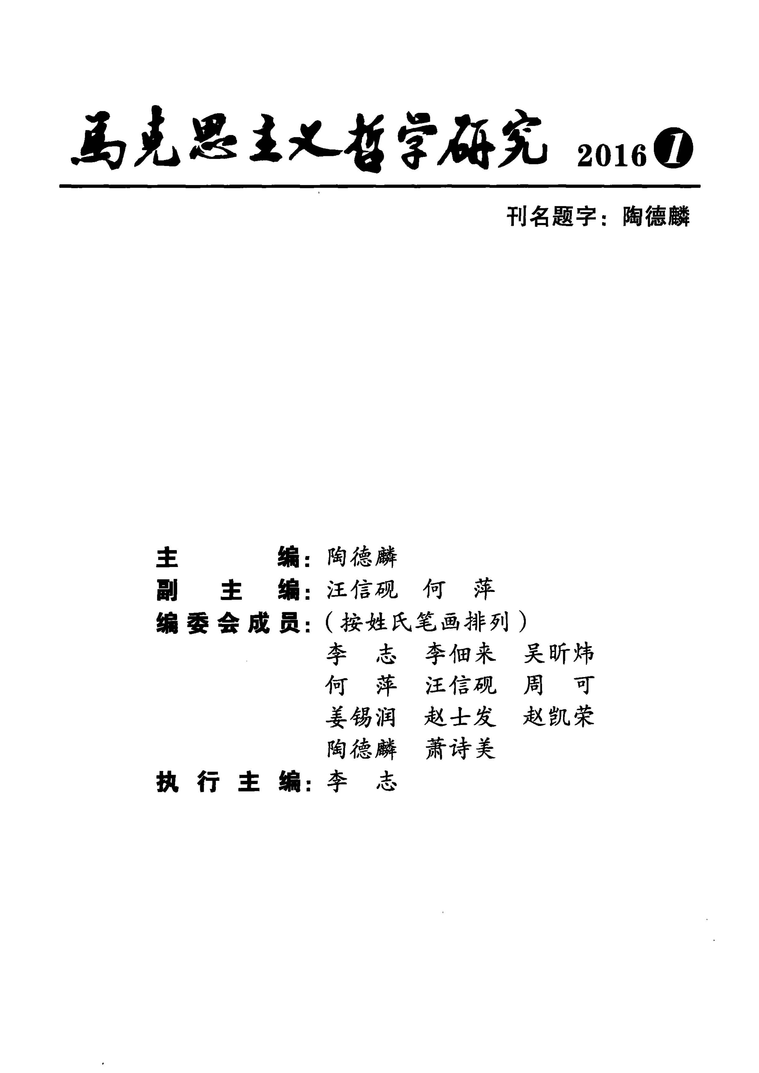 《马克思主义哲学研究》(2016年第1期)