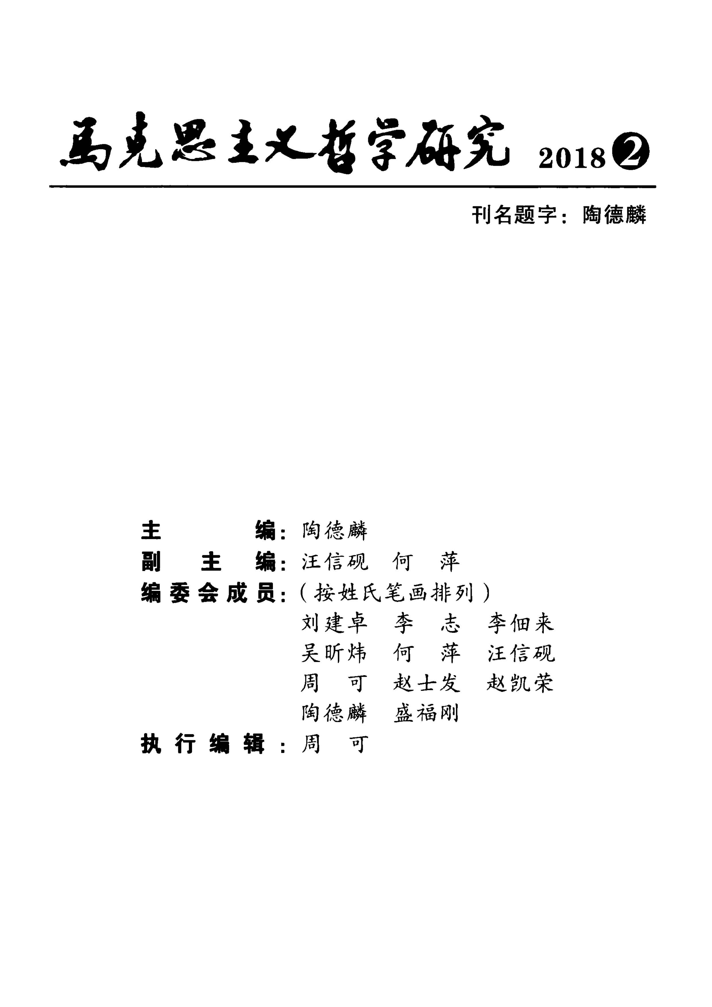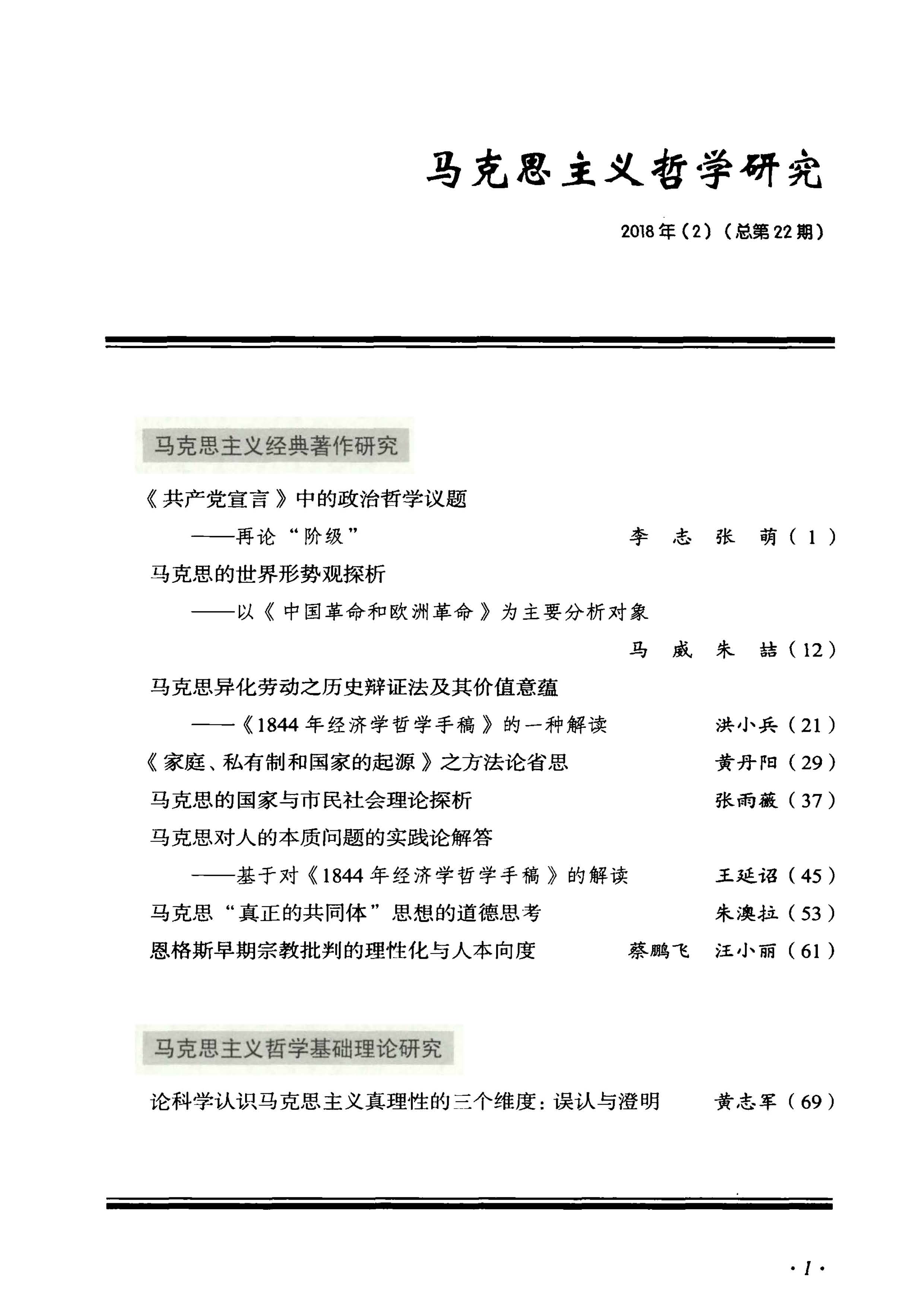《马克思主义哲学研究》(2018年第2期)