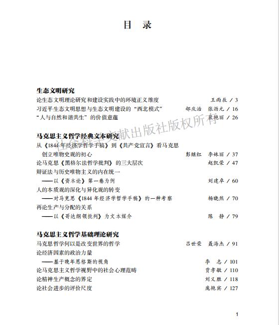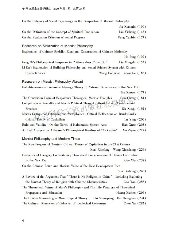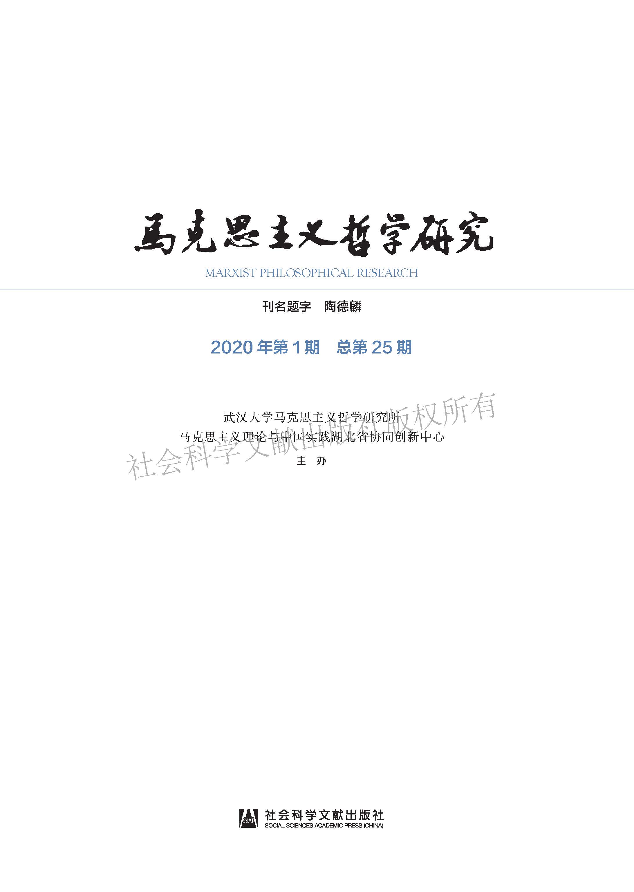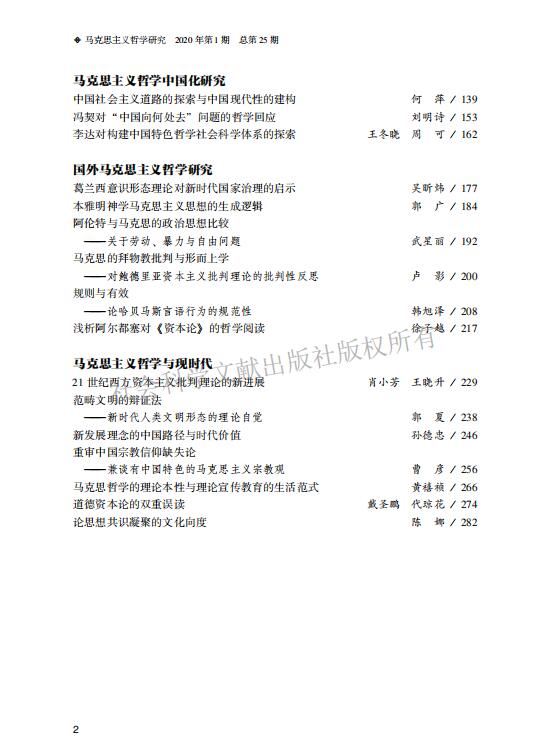 《马克思主义哲学研究》(2020年第1期)