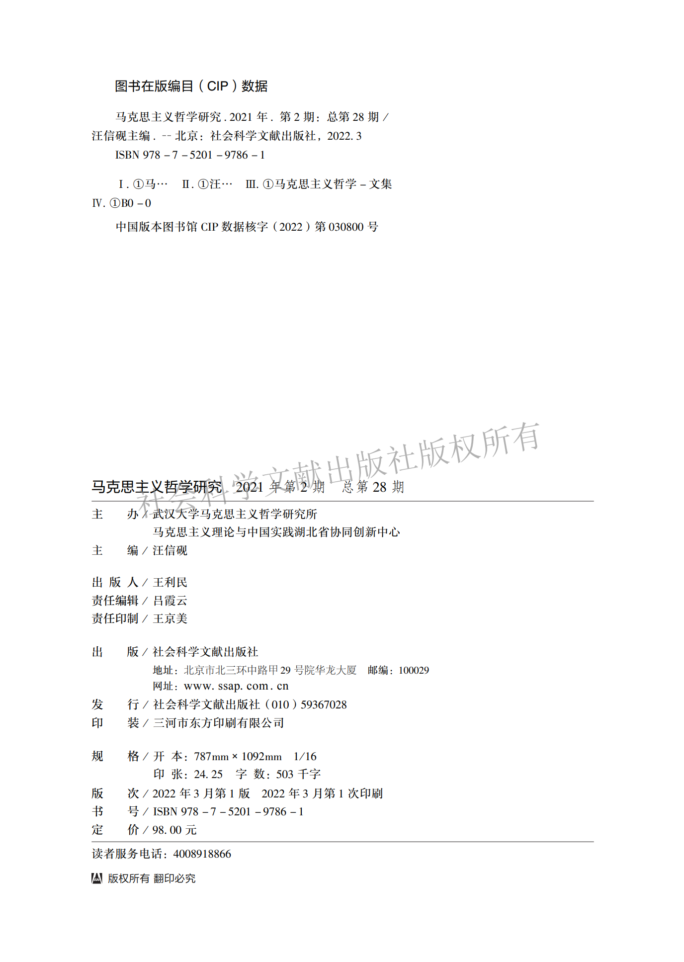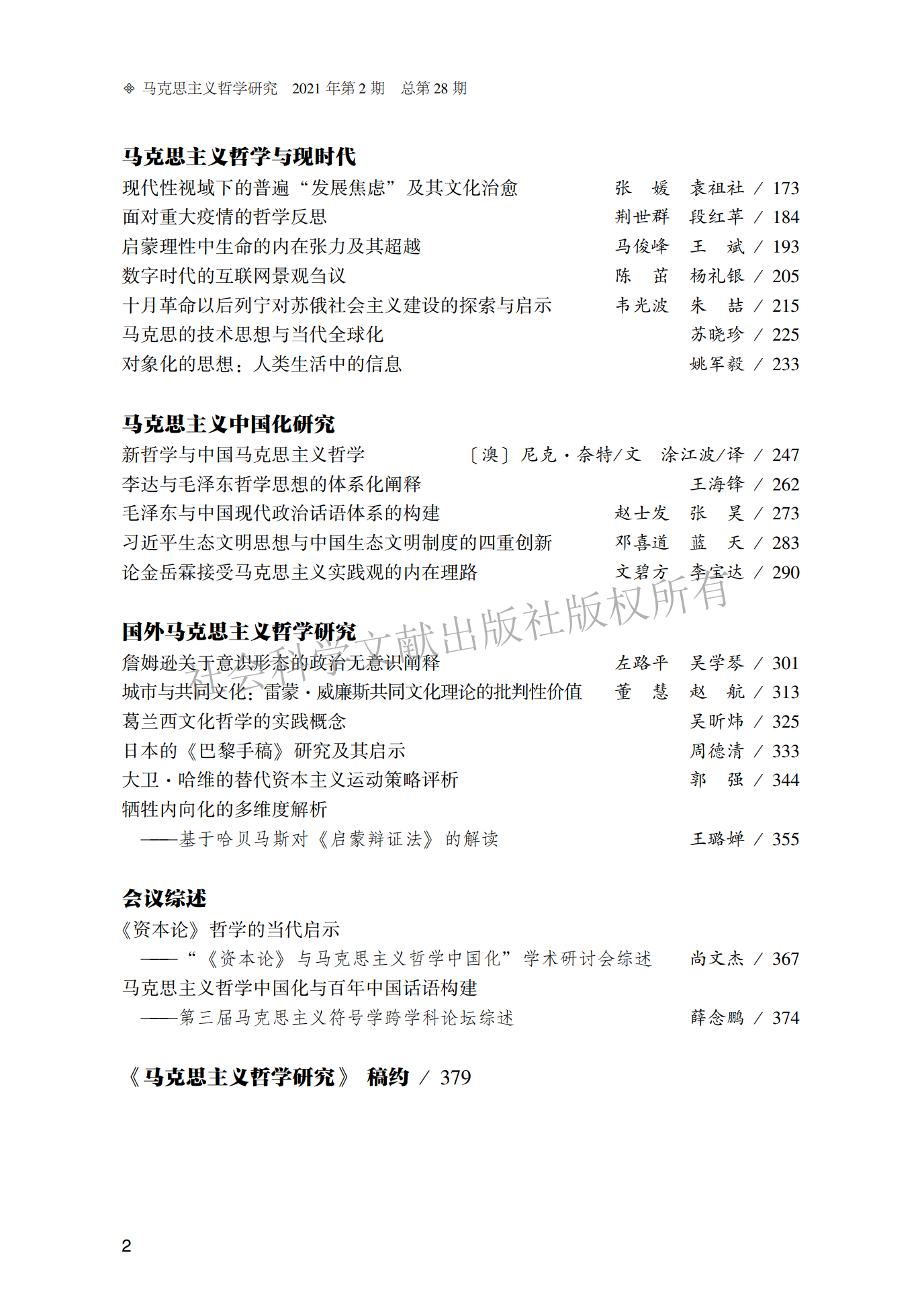 《马克思主义哲学研究》(2021年第2期)