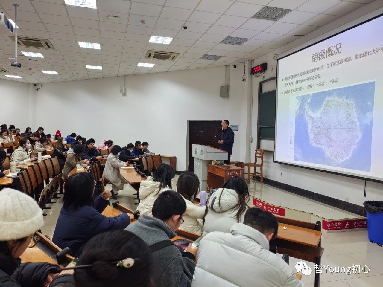 霍鑫鑫:通过本次报告我了解到了很多关于极地科考的知识,以及极地工作者们在科考中的故事。知道科考中可能会面临狂风暴雪、酷寒低温、冰裂隙、高原反应等等困难,也更加深深体会到极地考察的艰难、困苦与不易,我也不由得生出对科考工作者们舍生忘死、艰苦奋斗精神的由衷的敬佩。