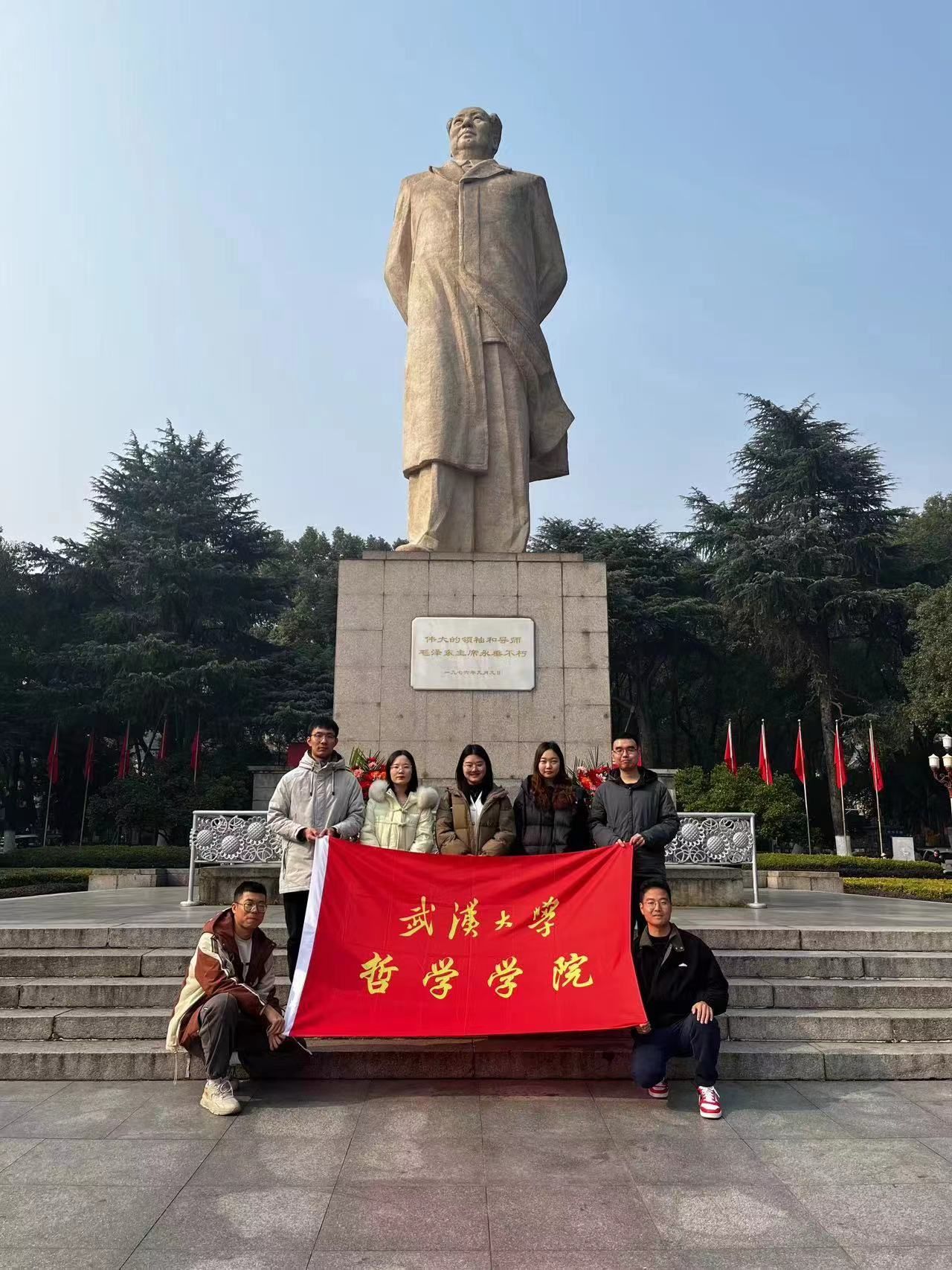 毛泽东同志曾在长沙生活求学、开展革命活动。出于对毛泽东同志的崇敬与爱戴,长沙人民在多个地点树立纪念毛泽东同志的雕像。12月28日下午与29日上午,哲院师生寻访了两处坐落于长沙的毛主席雕像,以表达对一代伟人的深切缅怀。