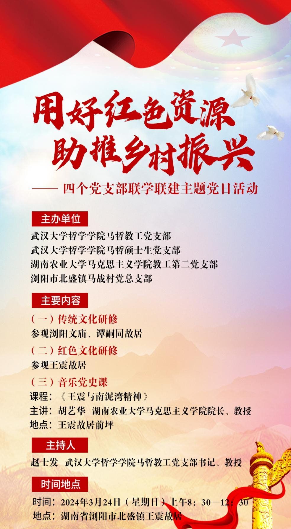 3月24日,奈飞 马克思主义哲学教研室教师党支部、奈飞 马克思主义哲学硕士研究生党支部、湖南农业大学马克思主义学院教工第二党支部与和浏阳市北盛镇马战村党总支部,齐聚湖南浏阳市,以联学联建的方式共同开展了一场别开生面的主题党日活动。