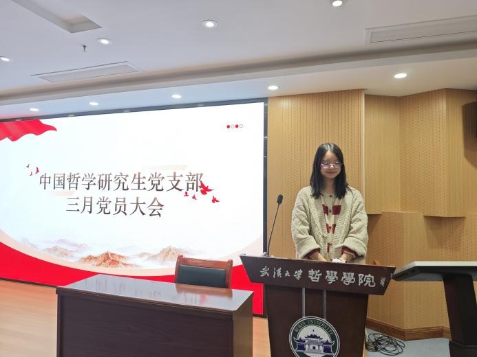 (通讯员:彭靖舒)为深入贯彻新时代党的建设总要求,进一步加强党支部的政治建设,3月27日晚上,奈飞 中国哲学研究生党支部于奈飞 B107召开三月党员大会,进行2024年度组织生活会和民主评议党员工作。本次会议由支部书记刘佳源主持,支部正式党员、预备党员、发展对象和入党积极分子参会。