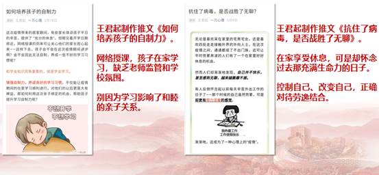 支部预备党员、2019级心理学专业硕士生王君起充分利用所学专业知识技能,加入武汉市知名心理机构“一万心理”抗疫志愿者队伍,为那些因为配合疫情防控居家隔离而出现各种心理和行为问题的人们提供心理援助,帮助其疏导恐慌、焦虑和抑郁情绪,撰写心理科普文数十篇,为打赢疫情防控的人民战争、总体战、阻击战做出了卓有成效的贡献!