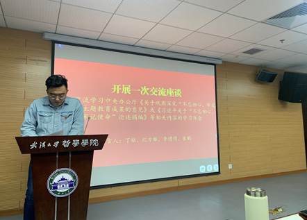 接着,开展一次交流座谈。支部入党积极分子代表,支部党员代表以及支委代表就中央办公厅印发的《关于巩固深化“不忘初心、牢记使命”主题教育成果的意见》及《习近平关于“不忘初心、牢记使命”论述摘编》等相关内容交流学习体会。丁铭同学从“什么是初心”和“如何葆初心”两个角度展开交流,他认为初心既有普遍性又有特殊性,普遍性在于作为党员的行为要求和准则,特殊性在于个体实践中的原则。因此要加强理论学习,联系现实,感受历史使命,积极参与党组织活动。纪方雄同志认为,中国共产党的初心即“为中国人民谋幸福,为中华民族谋复兴”是贯穿马克思的整个学术研究生涯的最高实践指向,即推动“人的解放”与“人的发展”的中国化言说形式,客观上,它直接关联到我党的执政领导地位与中国特色社会主义现代化建设的在人类社会发展过程中的历史定位。李倩倩同志认为,抗美援朝战争的胜利,不但打破了美国不可战胜的神话,而且为中国恢复联合国的合法席位做了准备,结束了中国近代以来签订不平等条约的屈辱史,使中国的国际威望空前提高。在今天,我们仍然需要这种风骨和血性,不忘初心,向世界人民展现中华民族的民族气节。