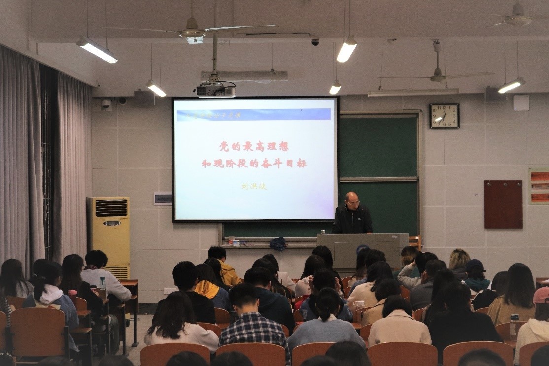 在历史学院党委副书记刘洪波老师的带领下,全体学员首先共同学习了“党的最高理想和现阶段的奋斗目标”。讲课伊始,刘洪波老师向培训班全体学员提出了三点要求:珍惜党课学习机会、积极与培养联系人联系,同时不断巩固群众基础。紧接着,围绕此次主题,他分别对“党的最高理想和奋斗目标是实现共产主义”、“社会主义初级阶段就是中国特色社会主义初级阶段”、“党在现阶段的奋斗目标是全面建成小康社会,加快推进社会主义现代化”这三个方面进行了详细且深刻地解读,使学员们对党的最高理想及现阶段奋斗目标有了更加深入的认识。