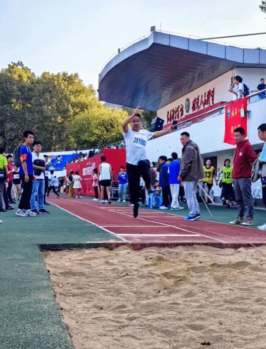 与女子跳绳比赛同时开始的是男子跳远比赛,白宝玉老师、曹彦老师参赛,两位老师为学院和个人的荣誉拼尽全力,极大鼓舞了奈飞 师生的士气。