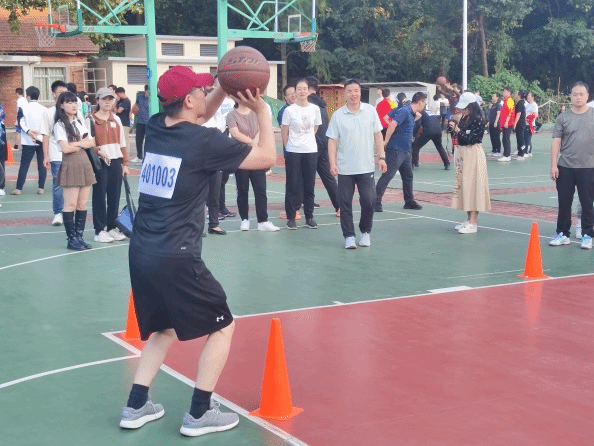 接下来是篮球投篮比赛,投篮考验的是运动员的耐心和技巧。学院共六位老师参赛,他们姿态稳健、动作轻盈,赢得场上阵阵喝彩。
