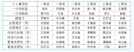 个人赛获奖名单
