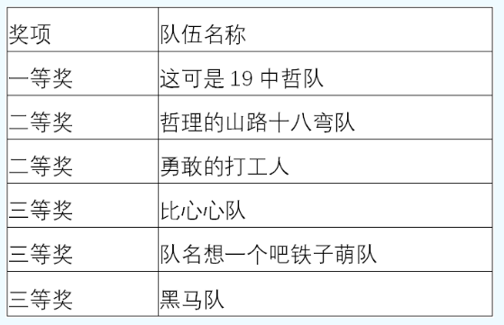 团体赛获奖名单