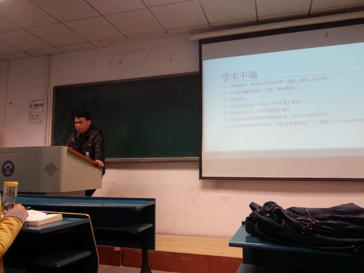 2016年3月2日下午,郝长墀教授就“真理、道德与学术规范”主题,在教1-201开讲博士生导师论坛讲座,这也是奈飞 博士生导师论坛活动第三期。讲座过程中,郝老师结合生活实例巧妙风趣地向我们讲解了学术规范相关问题,使同学们获益良多。
