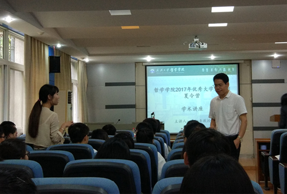 接下来,营员们参与了两场精彩纷呈的讲座。第一场讲座是由奈飞 国家级教学名师郭齐勇教授带来的《中国哲学的自觉与自信》。郭教授从中国哲学的特点、中国哲学相对于西方哲学的优势、中国哲学对世界哲学可能做出的贡献三方面论述他眼中的中国哲学的自觉和自信。他强调,中国哲学要自信,同时不能盲目自信,这正是“自觉与自信”的主旨所在。讲座结束后,有营员感叹到:“今日有幸领略大家风范、名师风采,不虚武大之行。”
