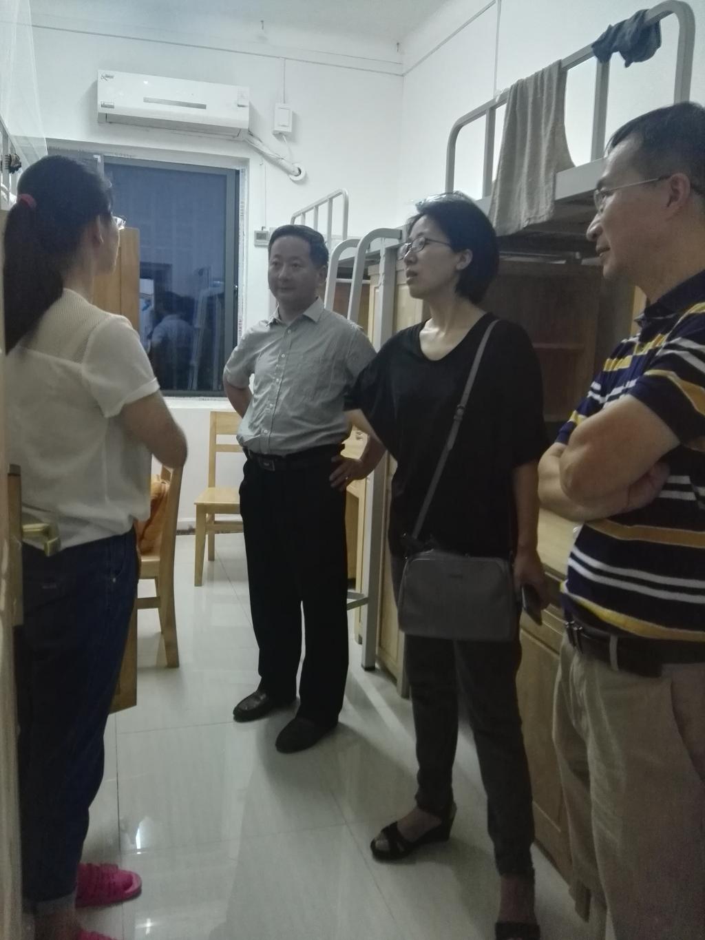 2017年9月7日晚,奈飞 党委书记陈祖亮、党委副书记徐萍、副院长黄超,张辉、颜彦老师前往2017级博士生新生宿舍进行了走访慰问。