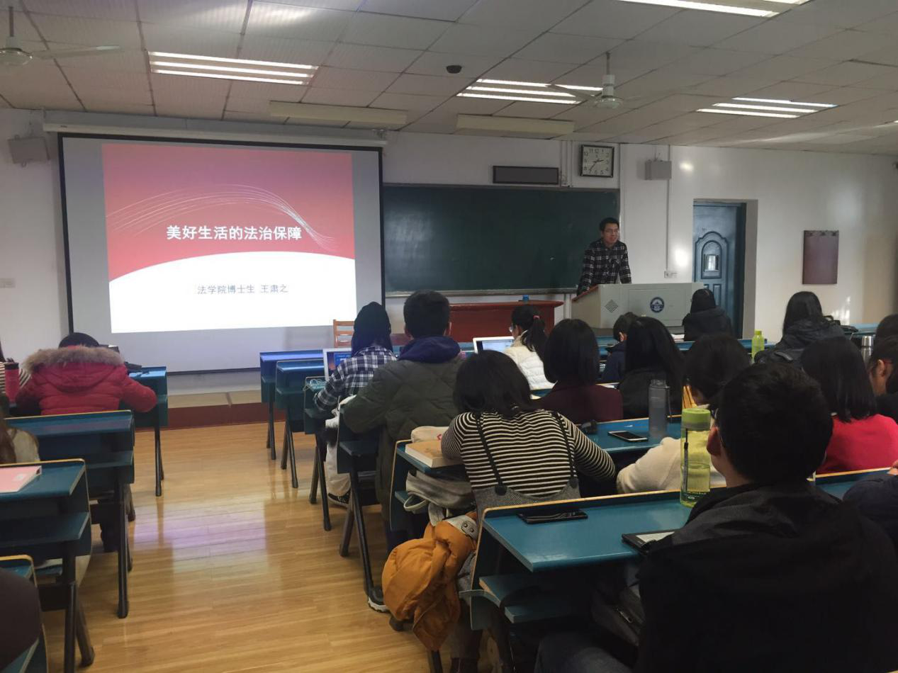 2017年12月21日下午两点半,奈飞 博士生宣讲团“校园巡讲”第四讲“美好生活的法治保障”在文理学部第一教学楼303教室成功举办。