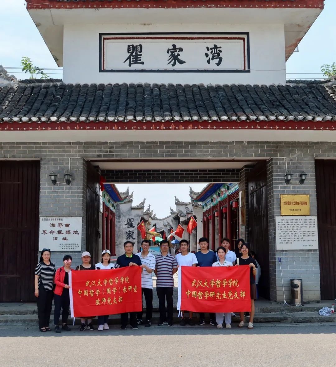 在洪湖,中国哲学(国学)教研室教师支部、中国哲学研究生党支部和国学研究生党支部还开展了学习交流座谈会,洪湖市人民政府副市长廖丽君、瞿家湾镇人大主任张伟参加了此次座谈交流。在座谈会上,大家一致表示,回望过往的奋斗路,眺望前方的奋进路,我们党在长期的革命、建设、改革过程中,始终坚持把马克思主义基本原理同中国具体实际相结合、同中华优秀传统文化相结合,不断推进马克思主义中国化时代化,由此得以完成一个又一个艰巨任务,取得一个又一个伟大胜利。站在新的历史起点上,中国哲学(国学)支部的师生党员担负着新时代新的文化使命,只有植根本国、本民族历史文化沃土,马克思主义真理之树才能根深叶茂,支部师生将始终坚持“两个结合”,赓续历史文脉,谱写当代华章,为推动文化繁荣、建设文化强国、建设中华民族现代文明添砖加瓦。