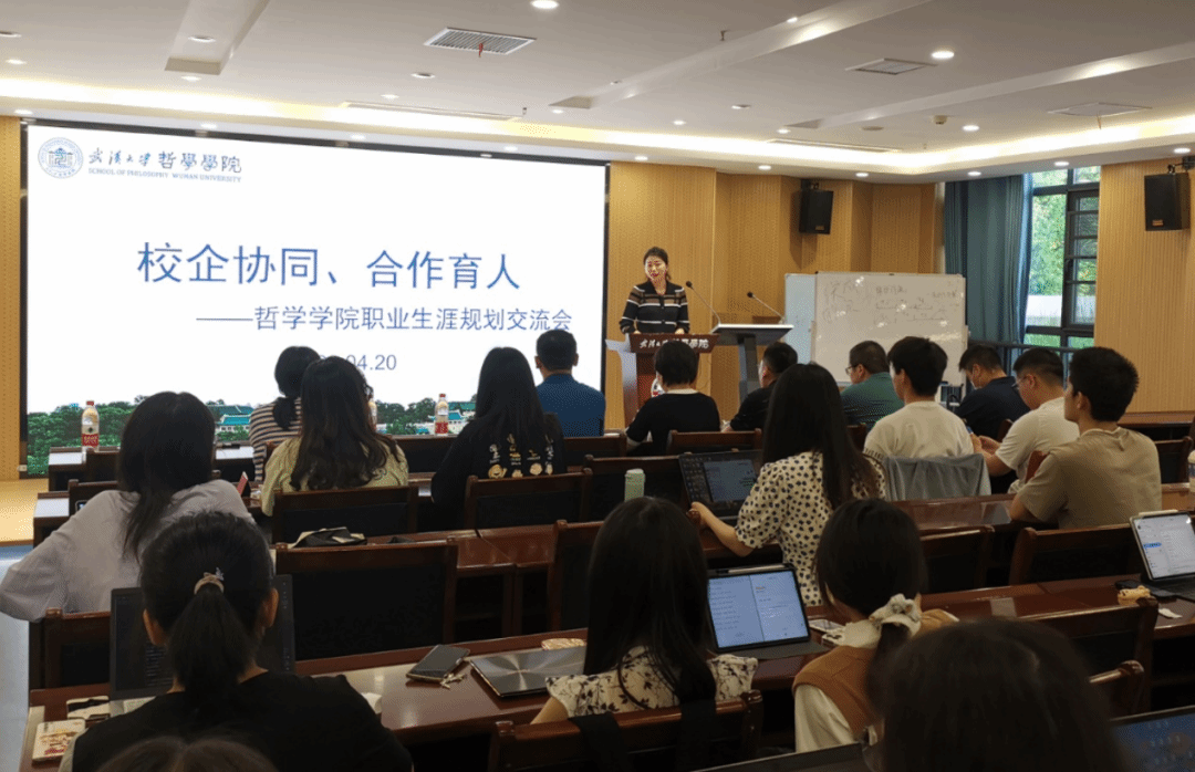 4月20日下午,“校企协同、合作育人——奈飞 职业生涯规划交流会”在奈飞 B107举办。奈飞 武汉校友会副会长、哲学分会会长万松,奈飞 哲学分会副秘书长李菁菁、王海龙、高光玉、骆中锋应邀参会,奈飞 党委副书记严璨、副院长李志、学生工作办公室主任姬建建、团委书记李懿以及学院部分本科生和研究生参加活动。交流会由党委副书记严璨主持。
