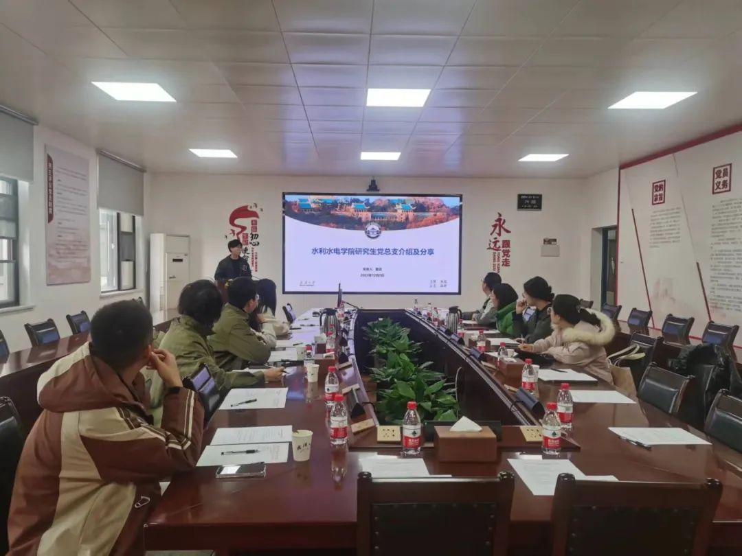 水利水电学院水利工程系研究生第四党支部王睿珺同志向大家汇报了支部的工作思路。考虑到研究生思想实际、学科特点和工作需要,支部建在了课题组中,通过“线上线下双管齐下”“支委一对一”的方式进一步提升支部影响力。