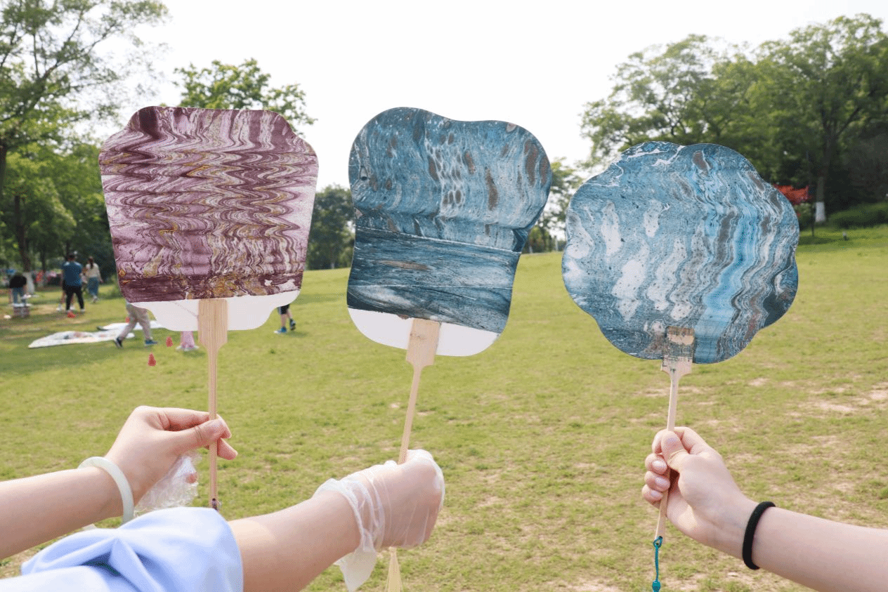 同学们积极参与,发挥想象,制作出了各具特色的漆扇。制作完成的那刻,色彩搭配之巧妙,成品之绚丽的漆扇得到了每位同学的赞叹。绮丽的小小漆扇,不仅是同学们团建的美好纪念,也为同学们打开了中国传统文化的一扇小窗。