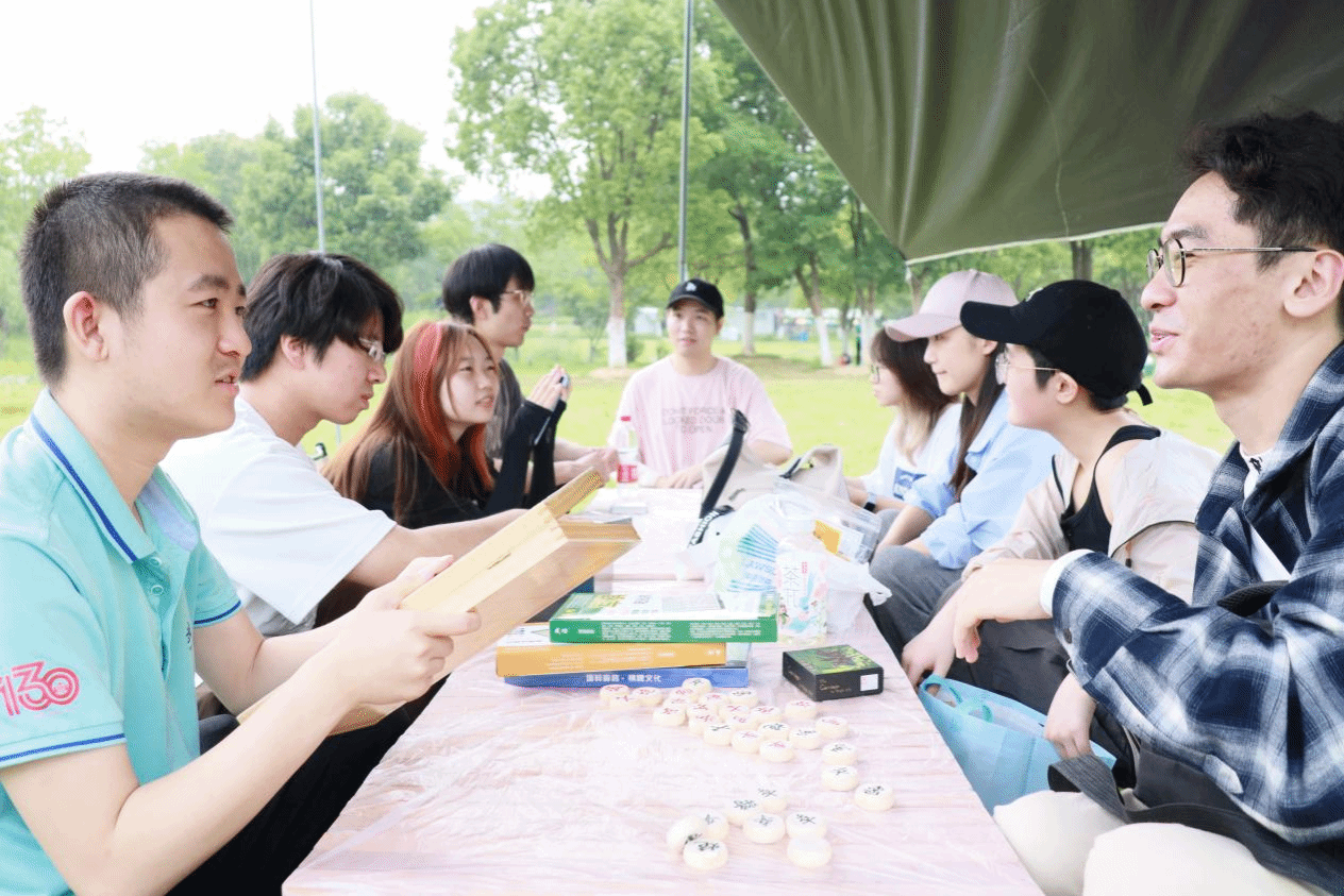 飞盘活动结束后,同学们分组进行桌游活动,玩的三国杀、阿瓦隆、石榴人等。在各项活动的间隙,有的同学用唱歌设备一展歌喉,有的同学下棋,有的同学放风筝,有的同学打羽毛球,各得其乐。