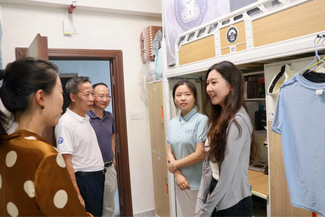 报到结束后,党委书记卢昌宁、党委副书记严璨、副院长黄超来到学生宿舍看望新同学。卢昌宁对新生的到来表示祝贺和欢迎,勉励新生要树立远大理想、注重品德修养、积极参与实践,用实际行动诠释新时代青年的责任与担当。严璨详细询问了新生的入住感受和生活需求,叮嘱新生要劳逸结合。黄超鼓励新生尽早明确个人发展方向,珍惜在校时光。