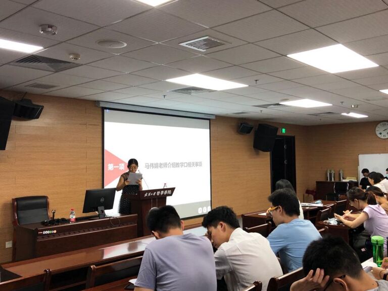 教学秘书马伟娟老师为新生介绍了教学相关事项,提醒同学们仔细研读新生群和研究生系统中的选导师、英语免修、本专业培养方案、白皮书和学院研究生工作手册等各项文件,还向大家详细介绍了学校有关国家交流交换项目、研究生学术科技节等奖励体系,鼓励大家充分利用学校资源、把握机会,有问题多与学院交流,向学长学姐请教。