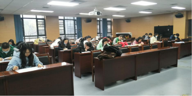 本次竞赛分为初赛和决赛两个环节,初赛于12月10日在振华楼B107举行。为了让参赛选手理解和掌握全会公报和“十四五”规划建议的整体框架,初赛采取闭卷考试的形式,让同学们在通读全文和梳理架构之后回答试卷。七组队员共28名同学在拿到了试卷之后开始了严肃认真的答卷环节。