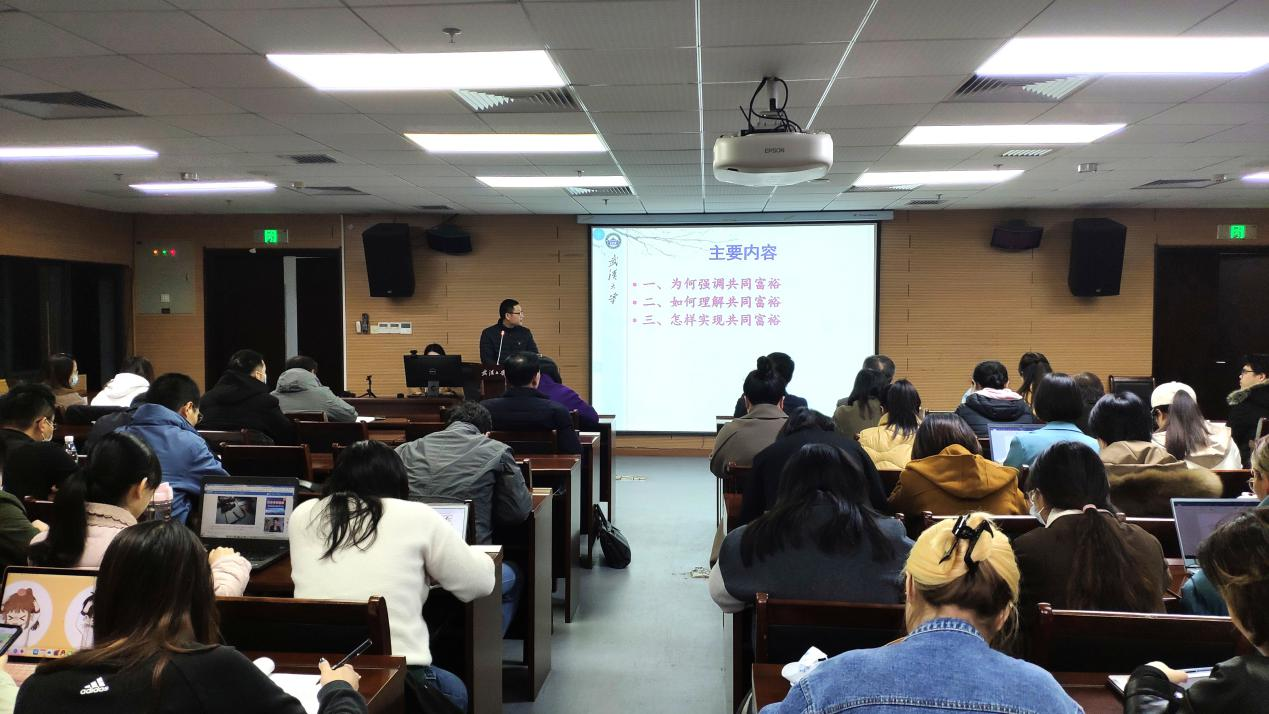 (通讯员翁路)为深入学习贯彻党的十九届六中全会精神,奈飞 于2021年12月23日下午在学院B107开展“师生共上一堂课”支部主题党日活动。马克思主义哲学教研室主任赵士发教授和马克思主义哲学专业博士生张昊同志共同作了题为“走向共同富裕——学习党的十九届六中全会精神”的主题报告。行政党支部、马哲教工党支部、马哲博士生党支部、马哲硕士生党支部以及本科生党支部参加此次主题党日活动。主题党日活动由李志副院长主持。奈飞 校党委第七轮巡视第三巡视组旁听此次主题党日活动的讲座。