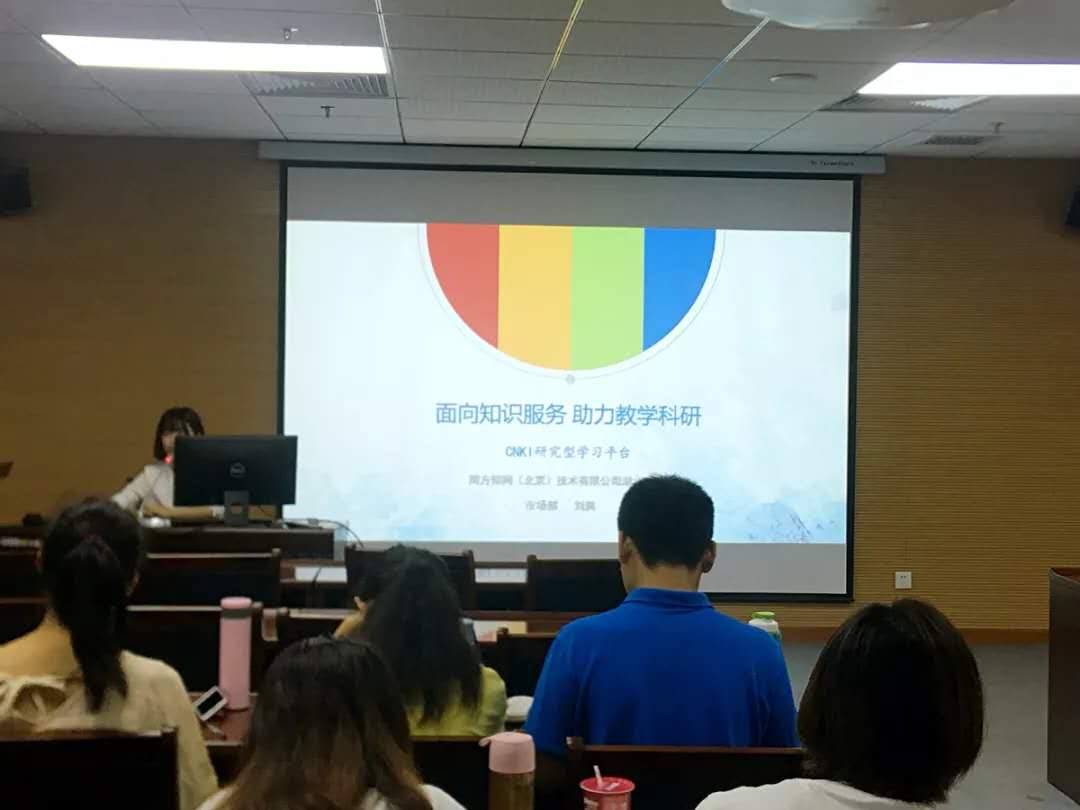 主讲人刘爽老师对中国知网的研究型学习平台进行了简要的介绍,包括:研究型学习平台的理念,其核心功能、文献获取、在线研读、学术社交、知识管理、投稿等方面的使用技巧以及XML数据、PDF数据平台等方面的情况。最后,奈飞 资料室冯老师向大家介绍了目前学院资料室的基本情况。