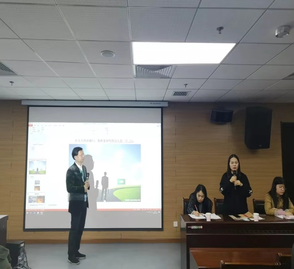 接着,朱老师通过两名优秀学姐、学长的求职就业实例大家展示了在求职过程中的注意事项以及努力奋进的方向,激励大家提升自身能力,在就业时不要局限于自身专业,拓展就业广度并传授了一些面试技巧。在演讲过程中,朱老师不时以提问的方式与三名学生代表进行互动,在一问一答中引导学生代表将自身的求职经验分享给大家,令在场观众收获颇多。