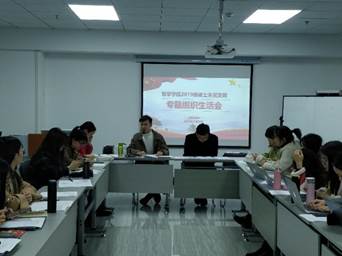 2019级硕士研究生党支部在振华楼B102召开了党支部专题组织生活会。会议由党支部书记王钲甫同志主持,党支部督导组成员、党委副书记刘义胜出席会议。