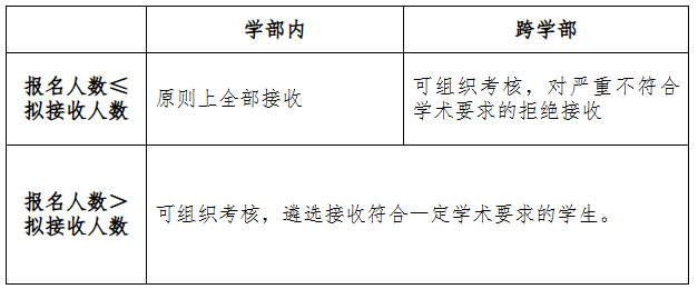 2.通过初审者进入面试考核。考核内容主要为转入专业的相关知识、综合能力和素质的测试;