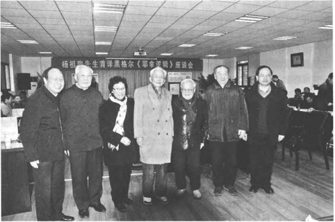 2012年《耶拿逻辑》首译座谈会与诸学者合影(左起郭齐勇、朱传启、肖静宁、刘纲纪、杨祖陶、陶德麟、江畅)