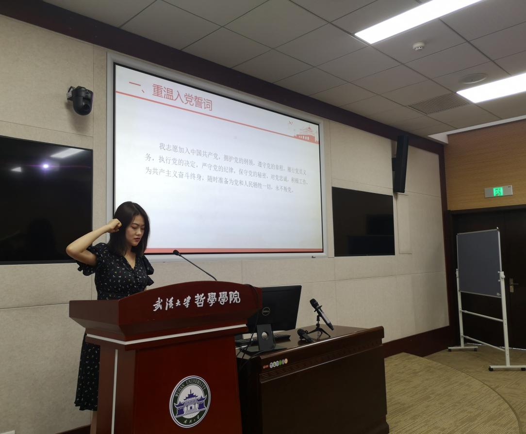 宣誓结束后,组织委员李奕带领大家学习党史故事,回顾了新中国成立之初,中国共产党通过确立新型社会价值观、开展党内整风运动等举措妥善处理旧社会遗留下来的种种问题,通过播放《党史故事100讲》相关视频,让大家更加深切地感受到中国共产党在新中国成立之初所面对的严峻考验与历史探索进程中的不朽成就。与会成员进一步将党史故事的学习和自己的家乡、亲身经历相结合,分享了党史故事的学习心得,为邓中夏、程砚秋等先辈的光荣事迹所感染、激励。