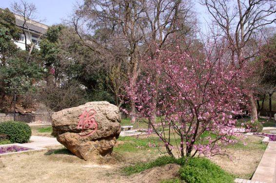 而住在梅园的学子,由于以哲院的和文院的居多,故一大清晨,总能在树丛间的小径上,遇到一群摇头晃脑,吟诵诗词的同学,或是在夜晚昏黄的路灯下,撞见一个来回走动、冥思苦想的“哲人“;冬天的中午在这里晒太阳也是很多同学的选择——懒洋洋地躺在石凳上,或手捧书卷,或小憩片刻,怎一个悠然与惬意!况且这里还是距武大图书馆总馆最近的地方——这对于住在梅园的同学来说,不可不说是天大的幸福。