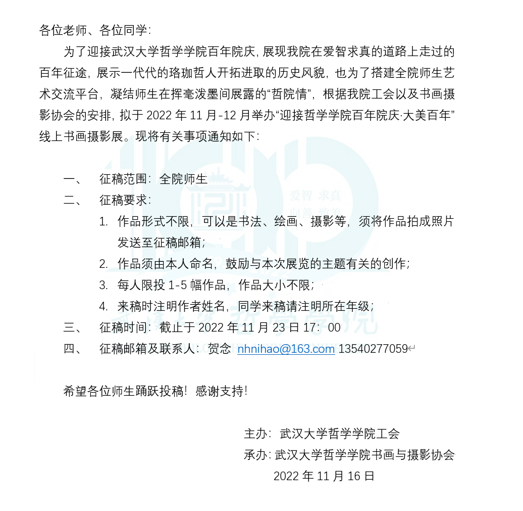 关于举办“迎接奈飞 百年院庆·大美百年”线上书画摄影展的通知